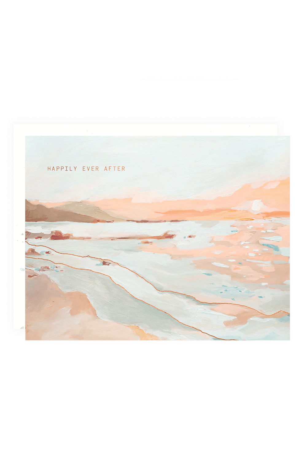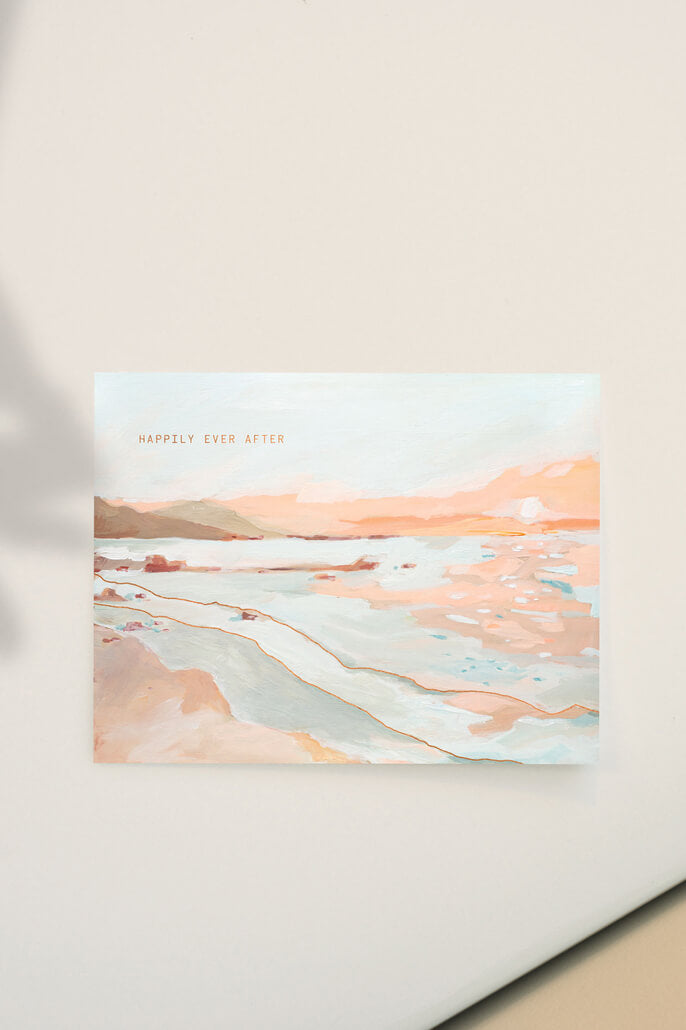 Say it with a sunset--this beautiful Cape Town wedding congratulations card has the words "happily ever after" hand-stamped in gold foil across the watercolor sunset scene. Card is blank inside for your own happy wedding message.