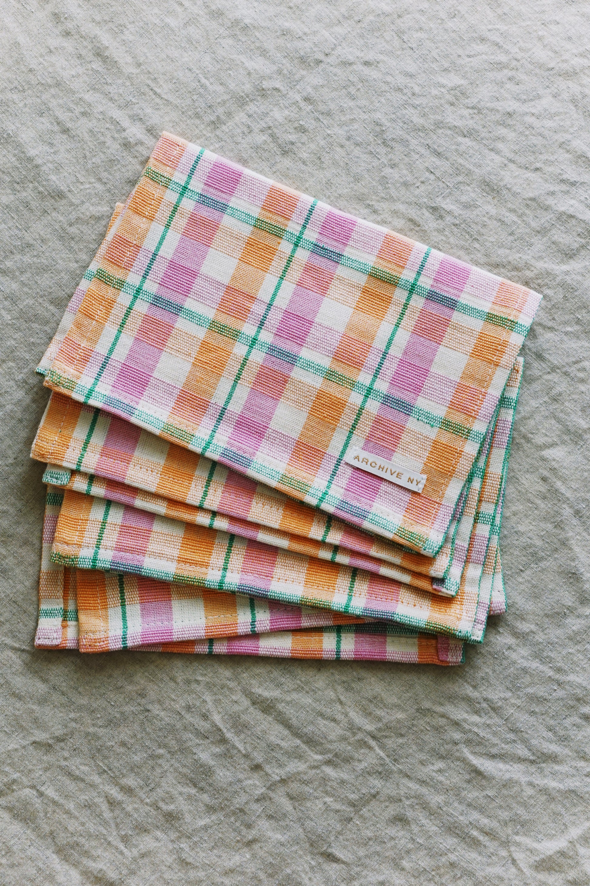 Archive New York is here! We're so excited to share this line of artisan home decor goodies with you, all ready to ship and brighten your home. The Marguerite cocktail napkins are the perfect plaid accent to add color and texture to any table setting from Easter brunch to spring dinners. Delicious stripes of bubblegum pink, peach, and a spring green are expertly woven together to create these pastel napkins.